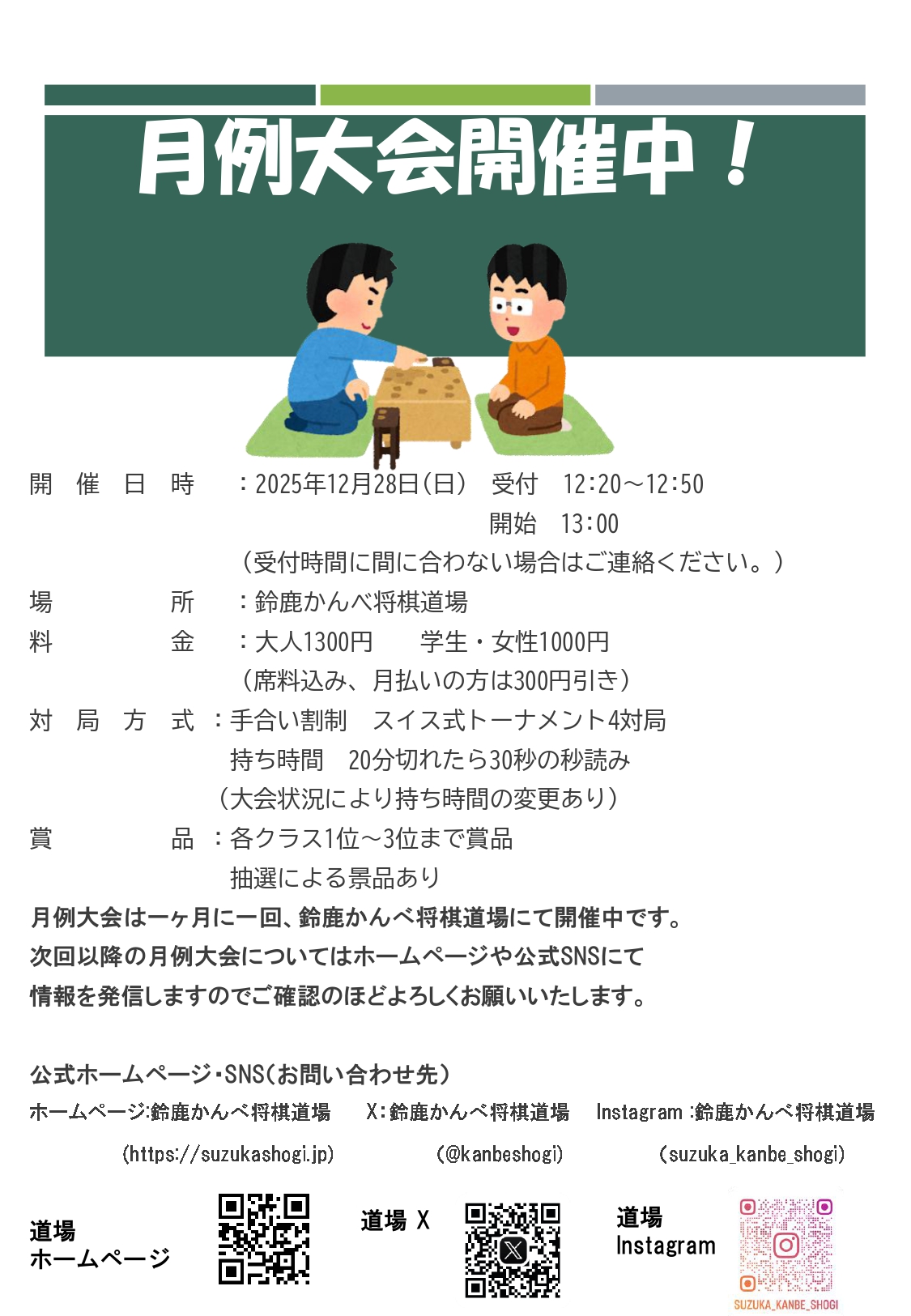 次回の月例大会は2025年12月28日(日曜日)に開催が決定しました!