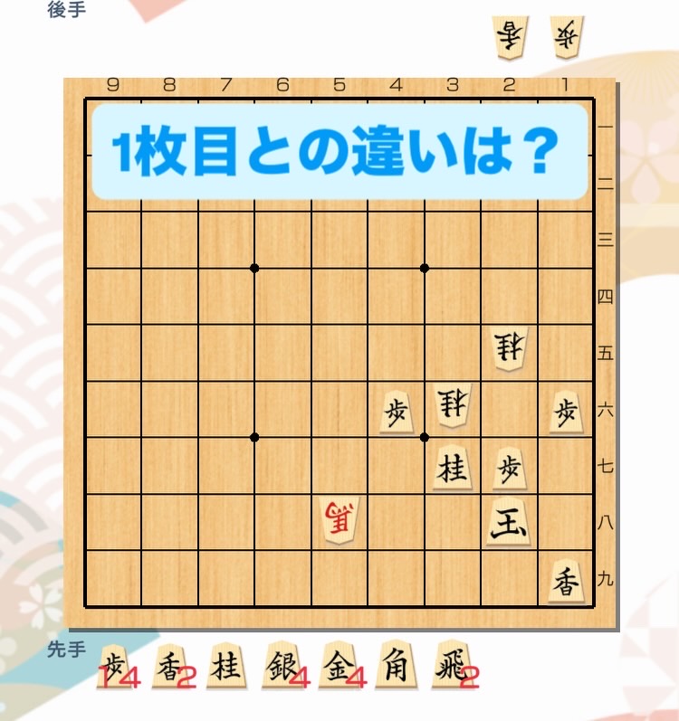2枚目は1枚目と異なり2筋に歩が打てるので、2九玉の時に2八歩と打てるのが大きくすべて詰みとなります。
